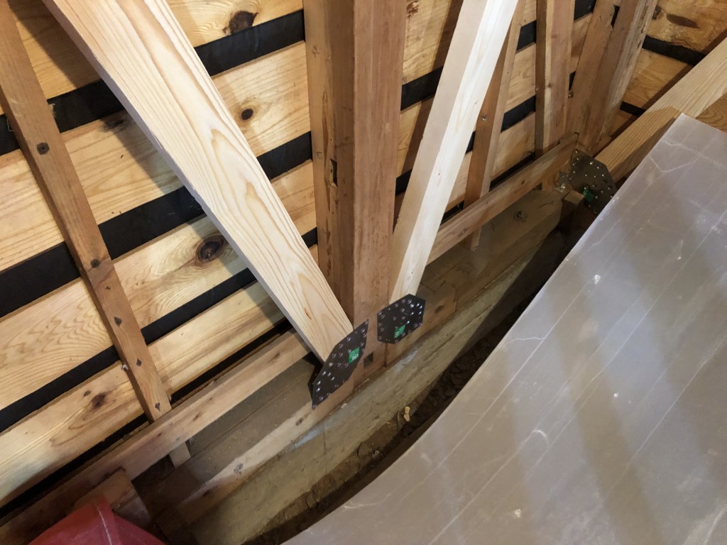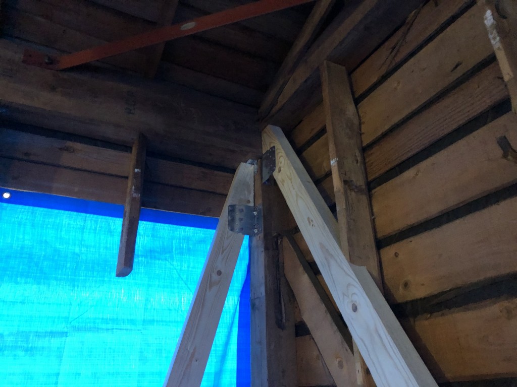 新たに太い筋かいを入れ、専用の建築用金物でしっかり固定しています。