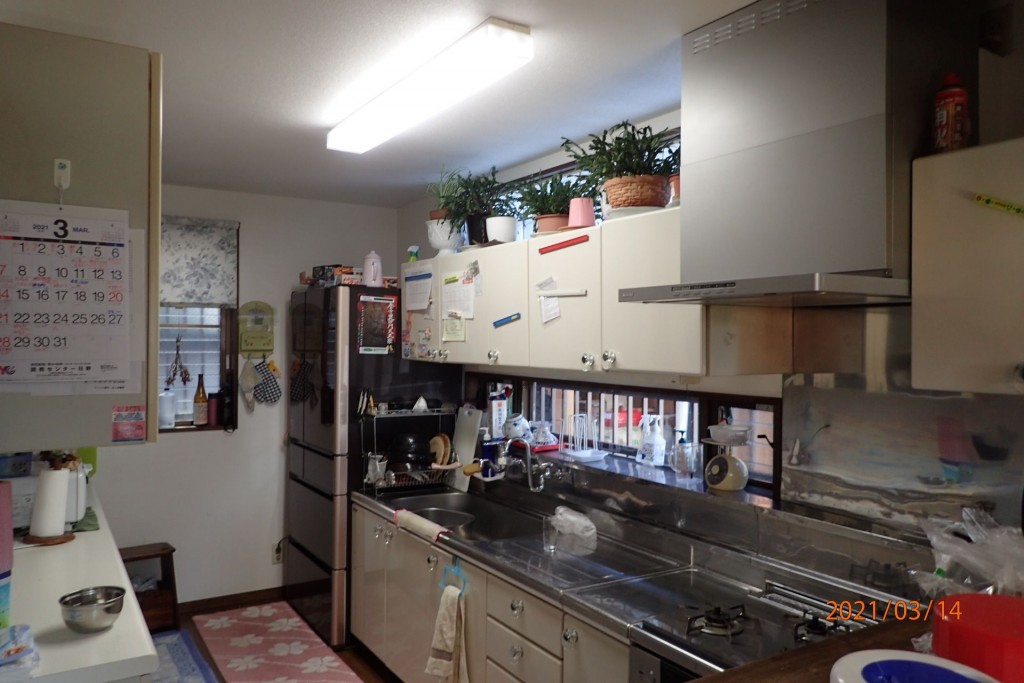 既存のキッチンは壁付けから対面化に変更して、