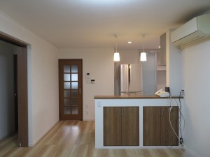 主な工事は、水回り設備交換、キッチンの対面化、和室の洋室化、シャッター交換(手動から自動へ)です。