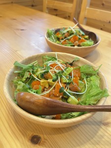 (野菜たっぷりの海鮮丼のようなお料理です)