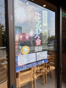 エンラージがメインスポンサーを務める八王子花火大会のポスターも入口に貼ってあります。
