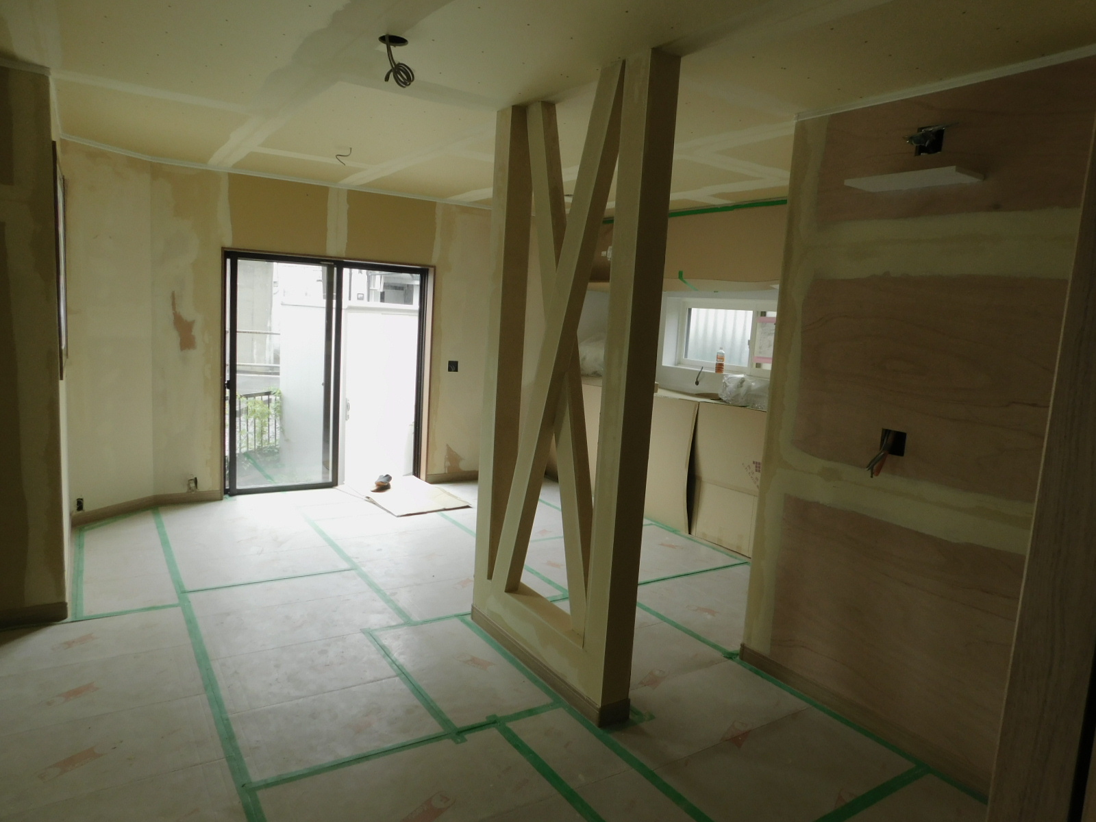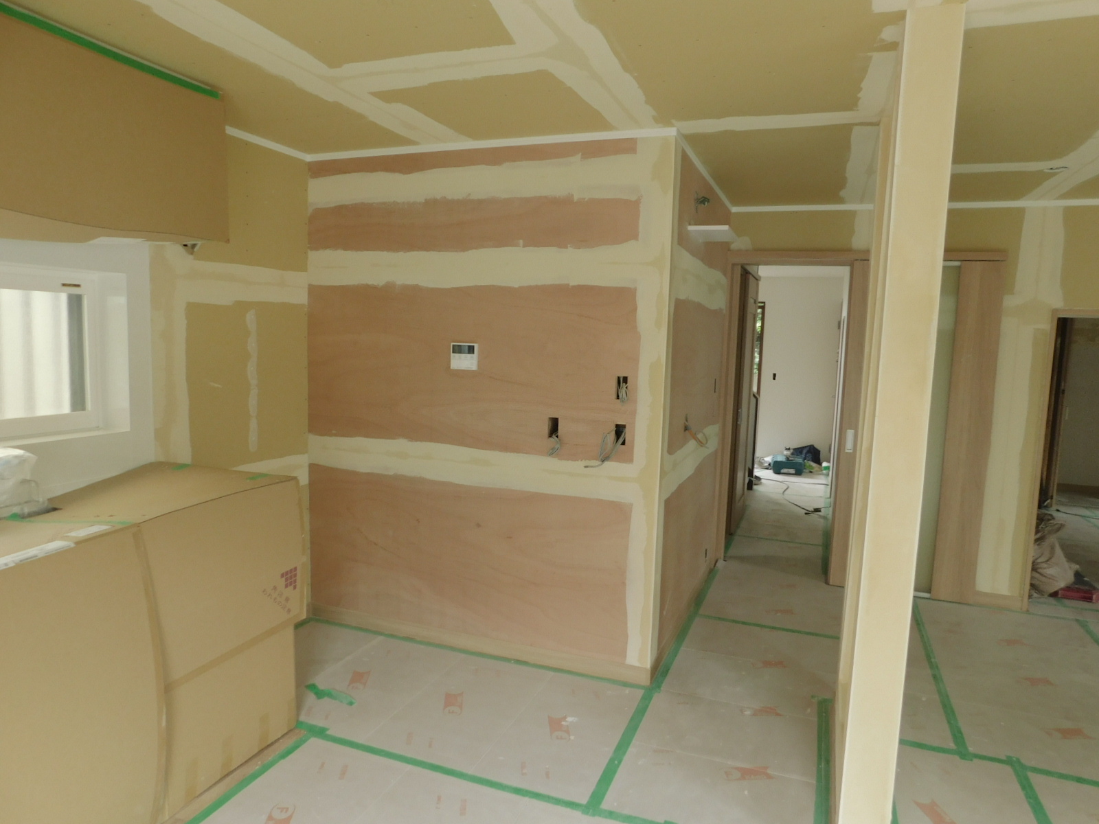 大工さんが施工した石こうボードの繋ぎ目をパテ処理し
