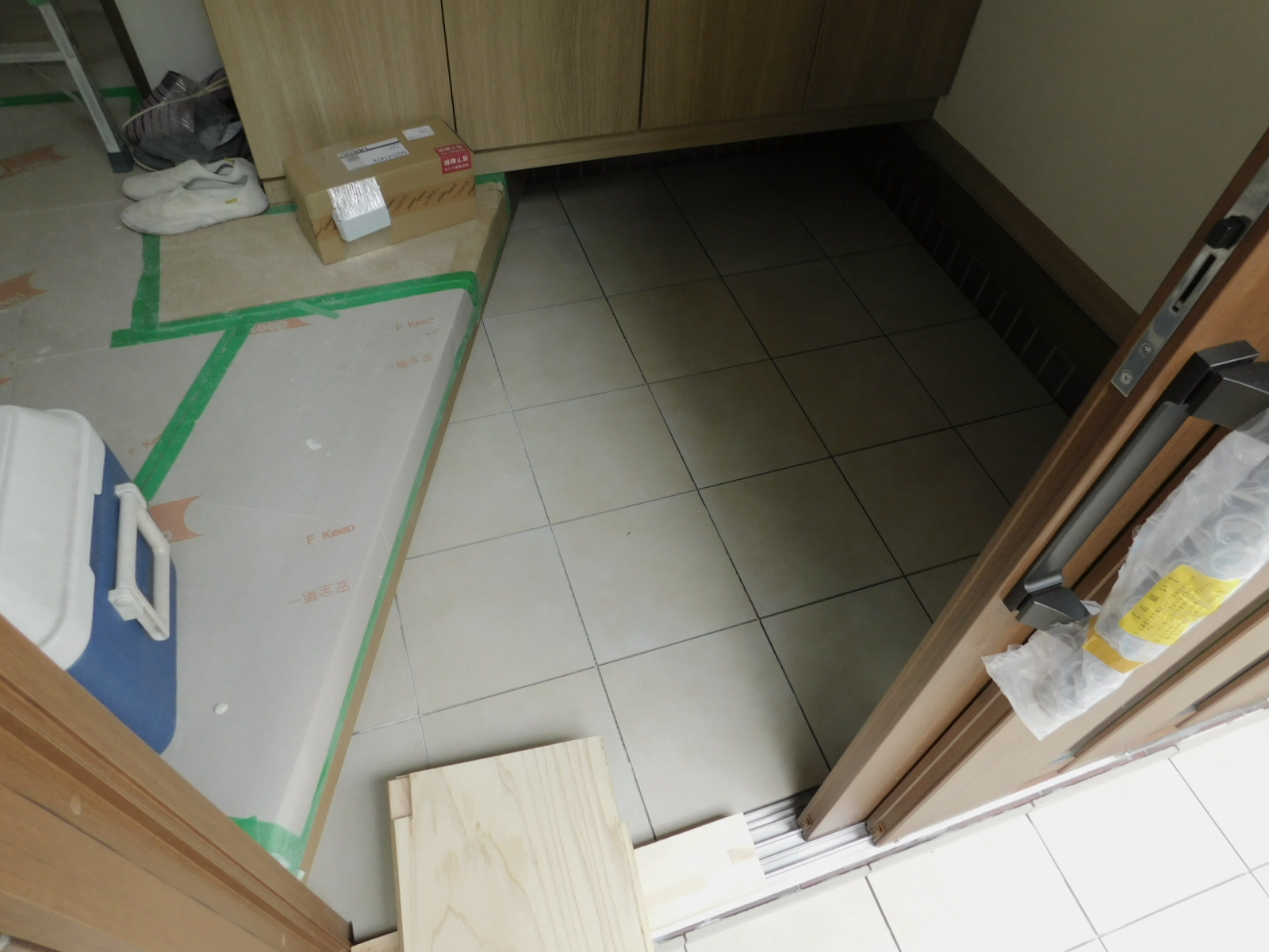タイル屋さんが玄関と玄関ポーチのタイル貼り工事を行っておりました