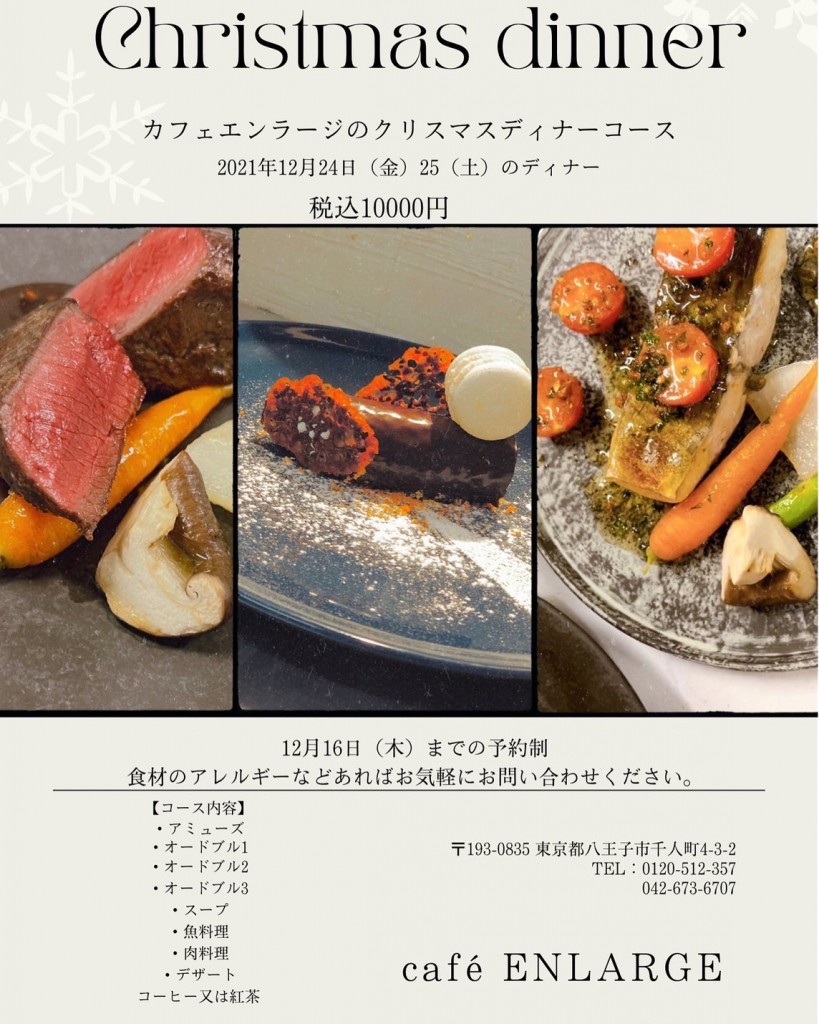 カフェ💛エンラージ*Xmasディナーコース🎄本日12/16(木)まで予約受付中♪