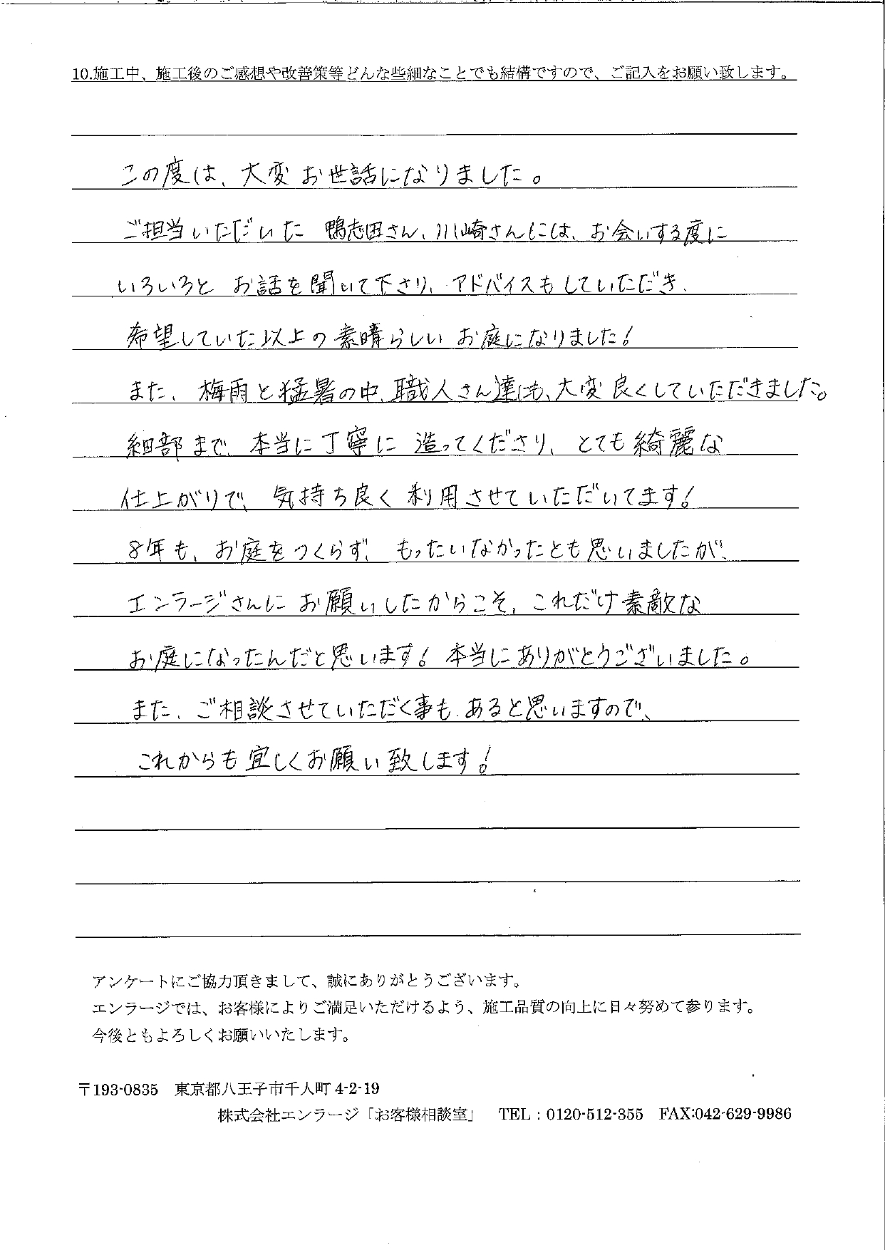O様 この度は外構工事の施工を当社にお任せ頂きありがとうございました。
