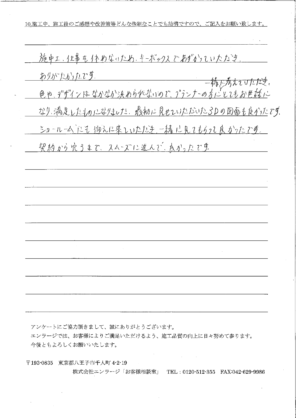 こちらの希望を聞いてもらい、納得の出来上がりになりました。