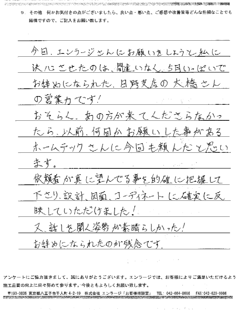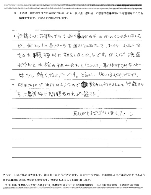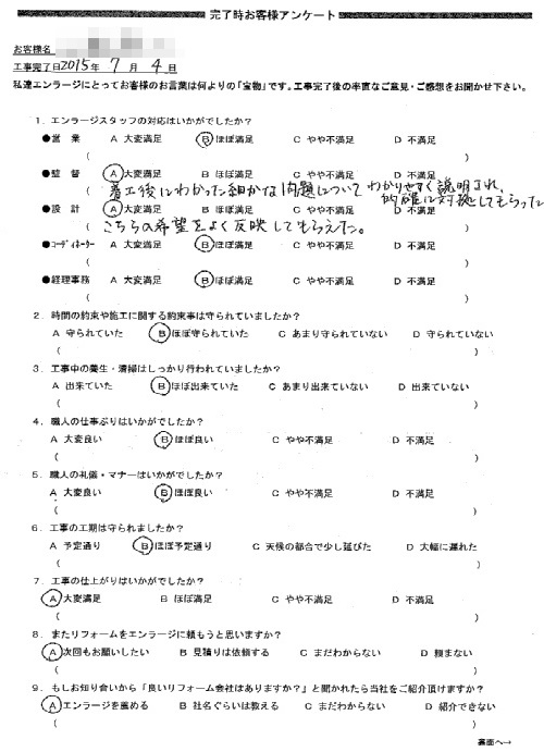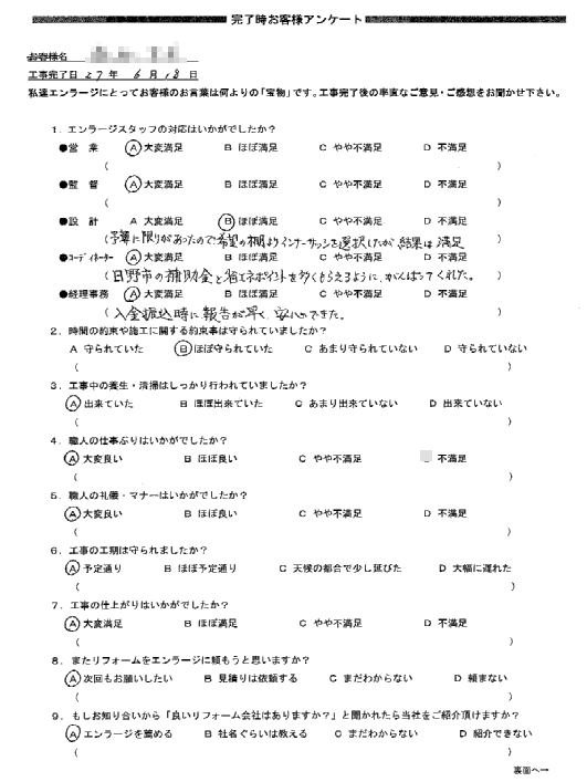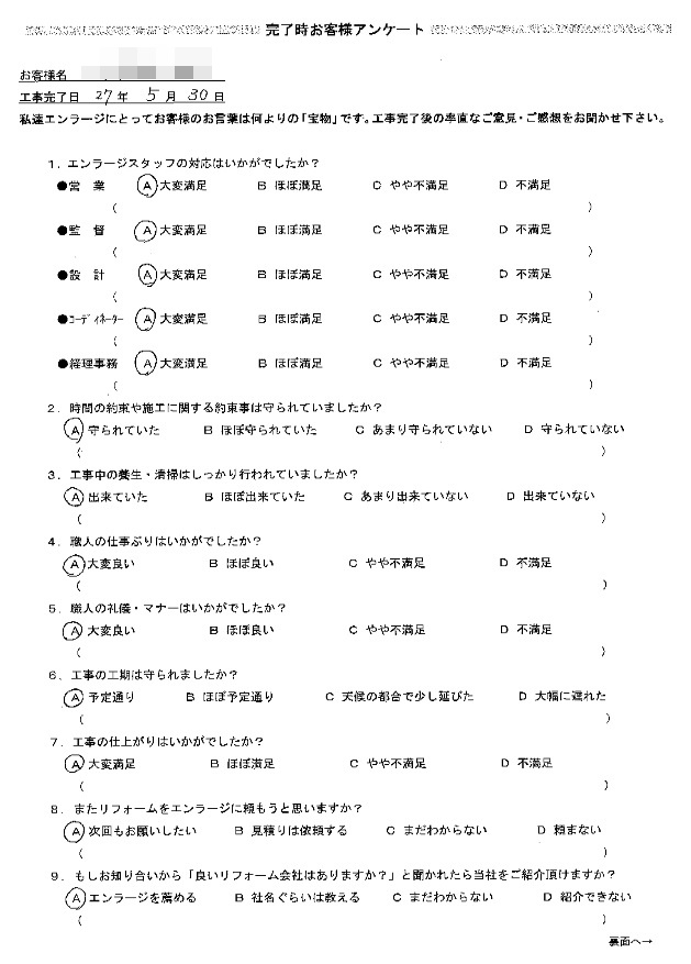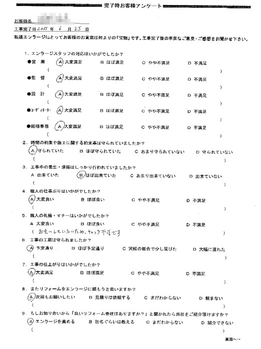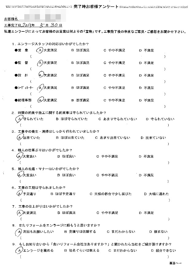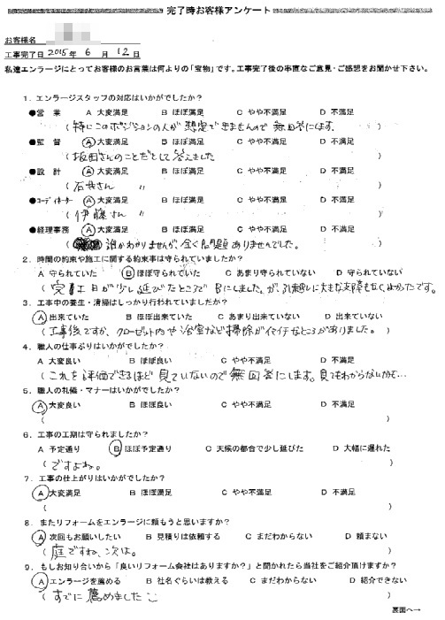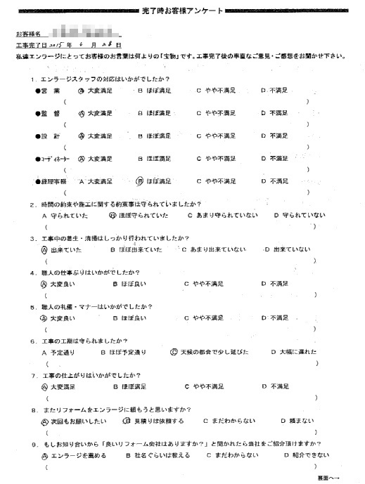是非またリフォームをする際は、エンラージさんにお願いしたいと思います。