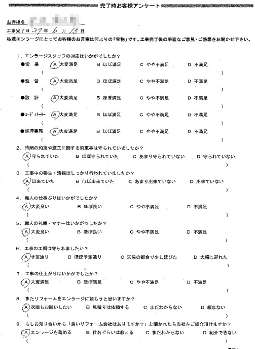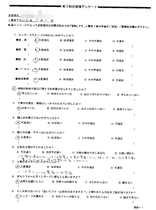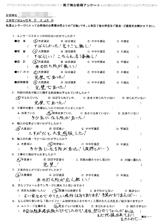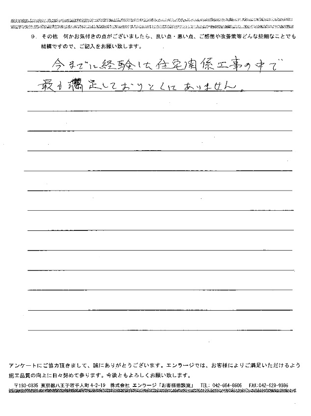 今までに経験した住宅関係工事の中で最も満足しております。
