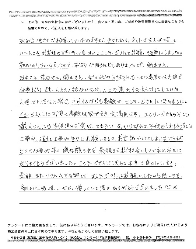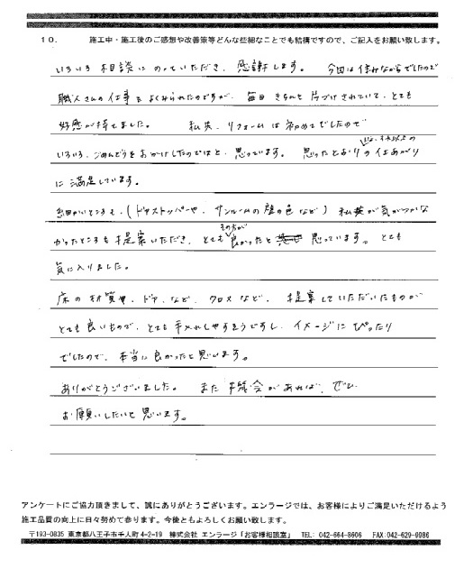 - お客様の声の一覧|八王子市・日野市のリノベーション&リフォームはエンラージ