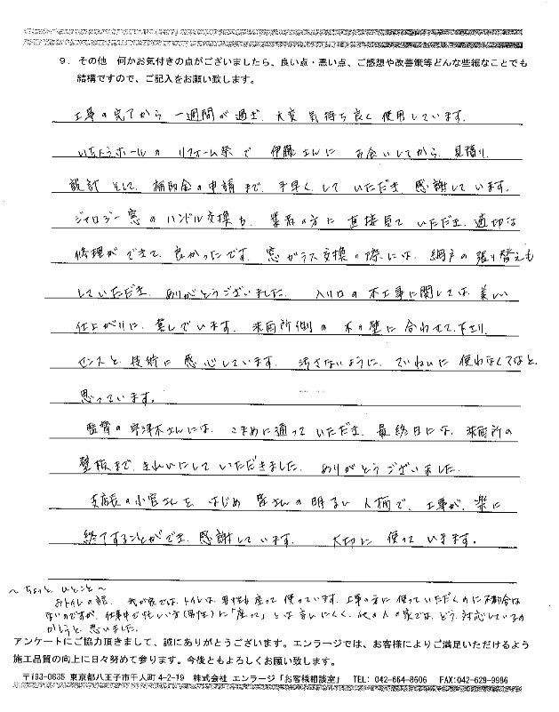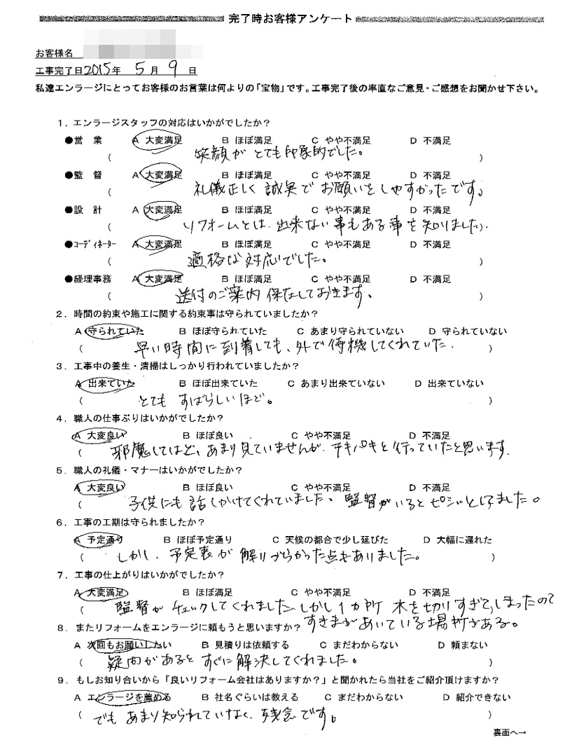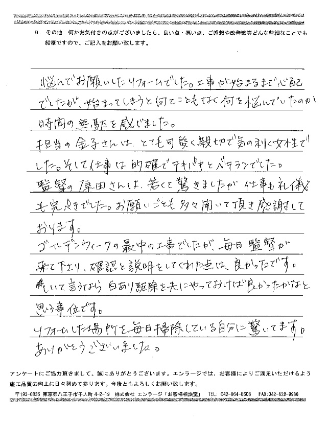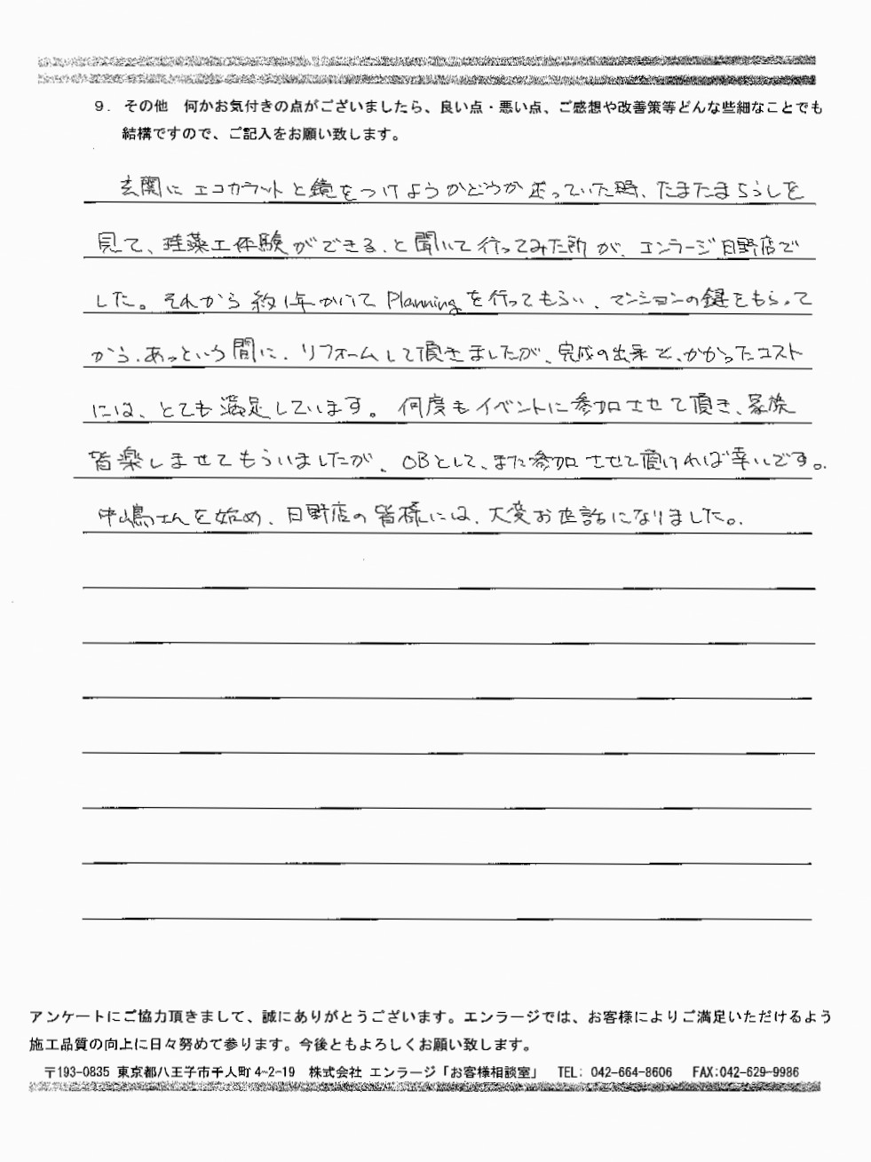 - お客様の声の一覧|八王子市・日野市のリノベーション&リフォームはエンラージ