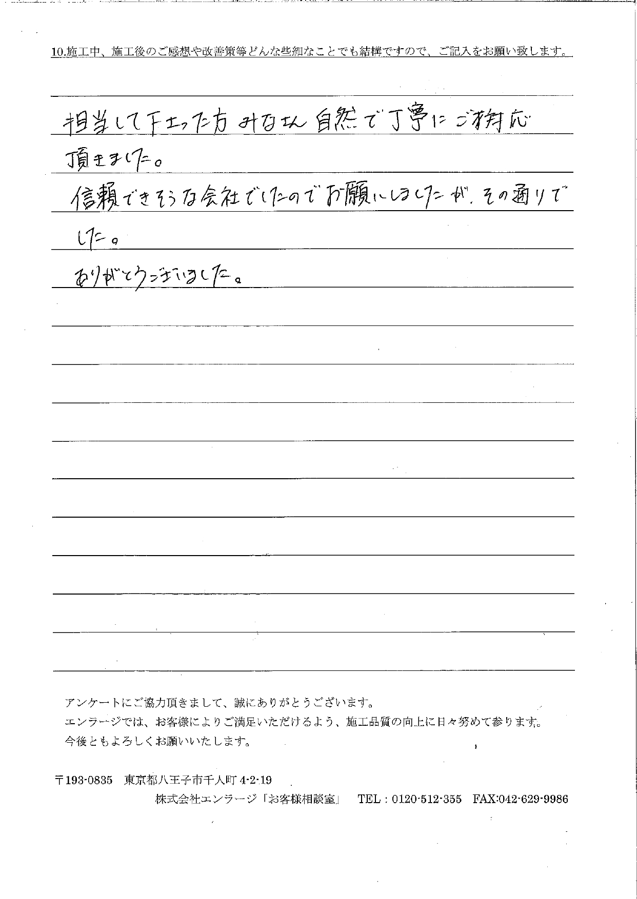 信頼できそうな会社でしたのでお願いしましたが、その通りでした。