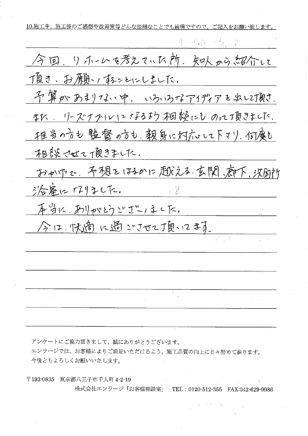 エンラージにお願いして本当に良かったです!